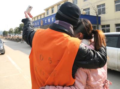 记录污点警示未来26日,黄石市第三看守所组织在押人员家属共吃年饭。一名在押人员身穿监服和妻子用手机拍照,记录自己犯法的污点,警示未来不再违法。黄石市黄石日报摄影部邱孝威摄电话:13807232603邮编:435002