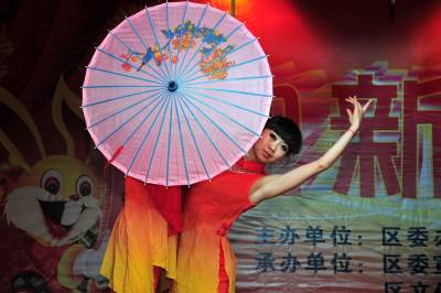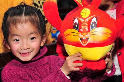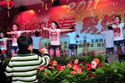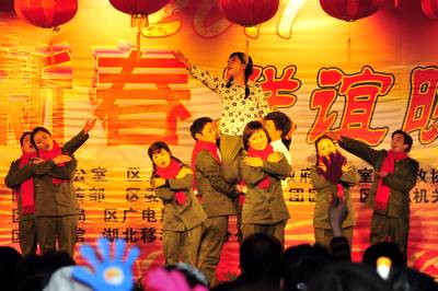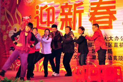 (中国春节)2011年1月26日是农历腊月二十三,民间俗称”小年”。湖北省宜昌市夷陵区各界欢聚一堂,群众演员载歌载舞,用精彩纷呈的文艺节目迎接新春佳节,现场活跃的”兔宝宝”,呈现出一片欢乐祥和的浓浓年味景象。本报视界网张国荣摄