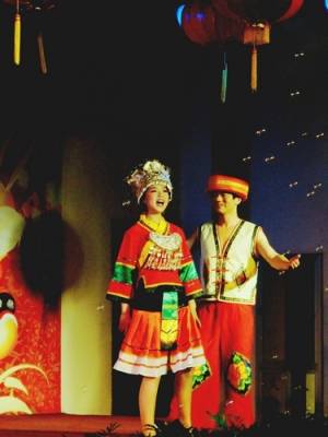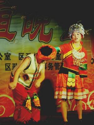 2011年1月26日晚,湖北省宜昌市夷陵区演员正在表演民族歌舞。在今年的迎新春联谊晚会上,该区把土色土乡的地方特色民族歌舞搬上舞台,让观众们大饱眼福。周建平摄