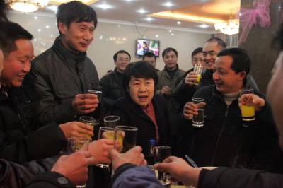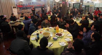26日晚,在宜昌船厂餐厅,宜昌市委常委、市总工会主席廖达凤与百余位农民工代表欢聚一堂,共享团年饭。廖达凤说,希望他们有空的时候,多回工会”娘家”走一走、看一看、叙一叙、聊一聊。
