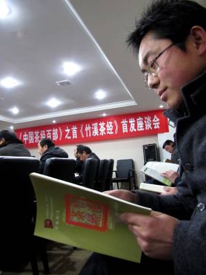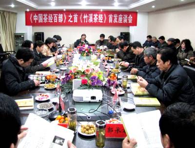 本报视界网签约摄影师颜义众:27日,竹溪县举行《中国茶经百部》首部——《竹溪茶经》首发座谈会,该书在全国正式发行。《中国茶经百部》属中国地域文化研究会文献项目,由中国地域文化研究会主任傅广典担任总编。竹溪县现有机茶园面积达20万亩,是湖北省第一茶叶大县,茶业文化历史悠久、底蕴深厚。近年新研发的茶食品、茶胶囊、茶保健品等批量上市,实现从喝茶到吃茶的飞跃,产品远销欧盟、日本等地。《竹溪茶经》由竹溪县委常委、宣传部长黎贵英主编,详细记载竹溪茶史、茶叶栽培技术、茶叶采摘、茶叶加工与包装、茶叶保存鉴别与功效、茶业、品茗、竹溪茶俗、茶文、茶艺,全书共32万文字,100余幅照片,由湖北长江出版集团崇文书局出版。