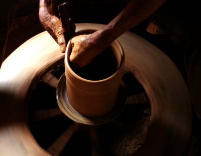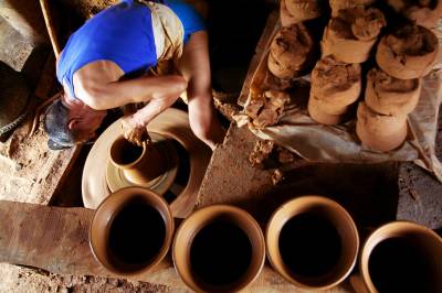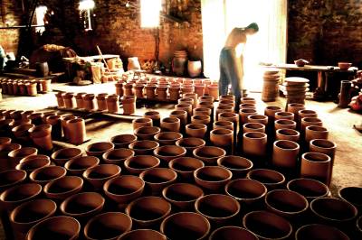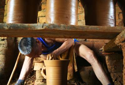 假如你还热恋繁华都市的酒吧,茶吧的话,愿不愿意去见识一下”陶吧”呢!在大冶金湖四斗粮村一个很不显眼的简陋工棚里,一些农家常见的陶制水缸,花盆,茶壶,烟筒等用品即随处可见,这些陶制品作坊没有一丝机械声,所以产品全凭手工制作,拍摄于2007-2010。
