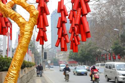 目前,武汉市大街上随处可见张灯结彩,新春正向我们走来。记者郑元昌摄