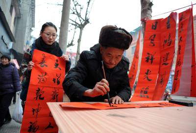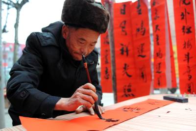 1月29日,宣恩县李家河乡烂泥沟村的熊德超老汉的春联摊前人头攒动。春节期间,64岁的熊德超带着桌椅板凳来到县城,为群众写春联。因书记的内容贴近生活、贴近农民,他书写的春联深受前来城里打年货的农民朋友的青睐。本报视界网宋文摄