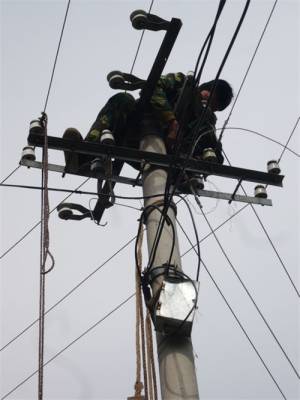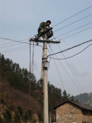 腊月二十七日,郧县五峰乡专职电工孙玉喜、乡广电站员工柯宗彬在该乡大石沟村一组完成春节前最后一个点的低压照明和闭路电视线路整改工作。至此,该乡春节前所有低压照明线路和闭路电视线路整改工作全部完成,农民可以放心地欣赏到兔年春晚精彩节目和开年后媒体提供的科技致富频道了,同时,也为年后移民内安、社会搬迁奠定了坚实的基础。(周宗华摄)