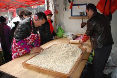 元月29日(腊月二十六)业州镇学苑路一门店,师傅们正在现场加工制作米子糖,门前围满了前来等着买米子糖的人,这里是长梁乡白云村十组潘兴明开设的专门加工、销售米子糖的店铺。白云米子糖香脆酥软,甜而不腻,淡淡的米香、悠悠的麦香让人回味不已。白云村有加工特长的20多户村民,一到腊月就赶到业州镇专门租下店铺加工、销售米子糖。利用本地种植的优质糯米来制作阴米子,熬制麦芽糖,到年底加工成当地传统食品—米子糖。通过加工米子糖,可以转化粮食约50万公斤,销售米子糖20余万公斤,收入超过百万元。视界网签约摄影师卢发荣摄(建始县业州镇宣传办卢发荣电话:18972403395)