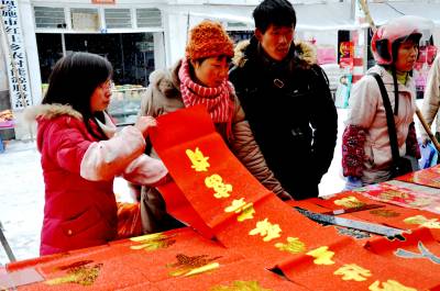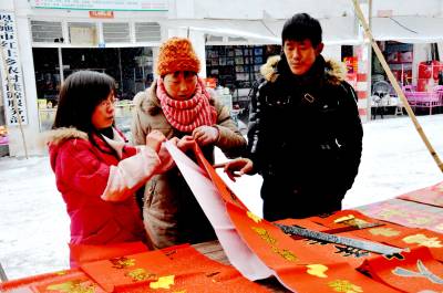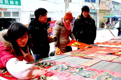 1月30日,恩施市红土乡集镇年货市场顾客在回乡大学生易宗慧的摊铺前选购新年饰品。寒假到来,春节临近,对学生们来说,自然是一年中最好玩最悠闲的时光。该市部分大学生却”闲不住”,活跃在城乡市场协助父母摆起年货摊档,吆喝了起来。让回乡大学生从年货市场学起步,大胆开辟创业之路。(视界网彭绍峰摄)红土乡政府13329820218
