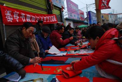 利川文化部门开展惠民活动1月30日,利川市都亭文体服务中心组织辖区的书法爱好者到大塘村免费为村民书写春联,深受村民欢迎。连日来,该市文体部门以”送欢乐、下基层”为主题,开展送戏下乡演出、春联书写赠送、兔年花灯艺展、快乐阅读、图书宣传等八大项文化惠民活动。(视界网秦卫飞)
