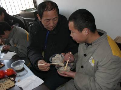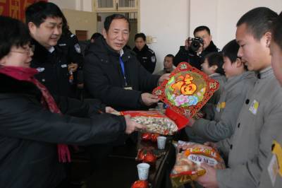 2011年1月31日,全国道德模范、人民的好公仆、感动荆楚”十大杰出老人”吴天祥在武昌区司法局领导陪同下来到湖北省未成年犯管教所,为40名孤儿、单亲及困难家庭的未成年犯送上春节礼物和新春的祝愿,并一起吃年饭。该所所长冯卫国、副所长蒋建军等领导参加了活动。年饭前的座谈会上,吴老深情地说:”每逢佳节倍思亲,今天是腊月二十八,是合家团圆吃年饭的好日子,因为种种原因你们不能和家人团聚,但政府没有忘记你们,你们仍然是我们的兄弟姐妹,我们就是你们的亲人。党和政府不会把他们看作镜框里的照片,一成不变。知错就改,改了就好。有一名服刑人员出狱后见义勇为壮烈牺牲,被认定为烈士,我每年都去看他的家人。省未管所是阳光之地,再生之地,是未成年犯成长进步的摇篮。‘上帝只救自救的人’,希望你们安心服刑,既来之则安之,好好的改,好好的学,要认真地总结自己出问题犯罪的教训,要有报恩之心,要有感恩之心。忘本之心不可有,感恩之心不可无,不要认为我现在在劳改,恨谁谁谁,这个观念是非常有害的,要感恩自己的父母,感恩自己的老师,感恩自己的管教干部,感恩我们的社会,要感恩我们的祖国。”吴老真挚、热情的话语,深深地感染了未成年犯,眼中闪着激动泪光的他们多次报以热烈的掌声。两名吴老多年帮教的学员汇报一年来的改造情况后,在场的女犯为吴老唱起了歌曲《感恩的心》。随后,曾在多个监狱担任领导的省未管所党委书记、所长冯卫国深情地回顾了自己多次亲历吴天祥老人帮教未成年犯的情景,代表所党委、全体民警和未成年犯对吴老表示诚挚的谢意,并勉励学员认罪悔罪,服管服教,学好法律道德和文化知识,培养技能,积极改造,早日回归社会,以实际行动报答吴老多年的关心、爱护。最后,吴天祥老人、武昌司法局领导、冯所长、蒋副所长等和未成年犯一起吃饺子团年饭,他们和未成年犯谈笑着、吃着,不停地给他们添饺子,连声夸饺子好吃。在又一次叮嘱和新年祝福后,吴老依依不舍离开了未成年犯们。据了解,吴天祥老人20年来坚持帮教该所未成年犯,仅2010年就来过3次,春节一次,中秋节一次,还有一次是带来老八路来所举行革命传统教育。