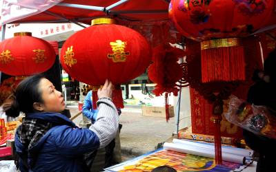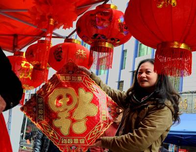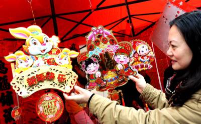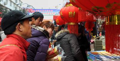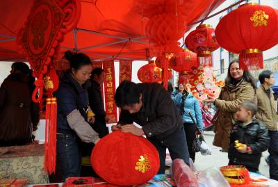 1日,顾客用十分挑剔的眼神儿在选购兔年饰品。农历兔年春节在即,在宣恩县的腊货市场,众多顾客纷纷前来选购兔年吉祥物、大红灯笼等新春喜庆饰品,准备红红火火过大年。本报视界网宋文摄