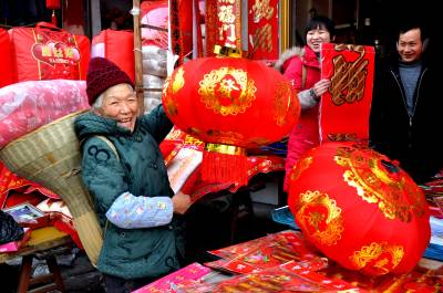 > (中国春节)”红火”山村”火红”年