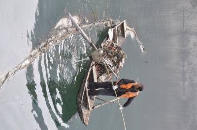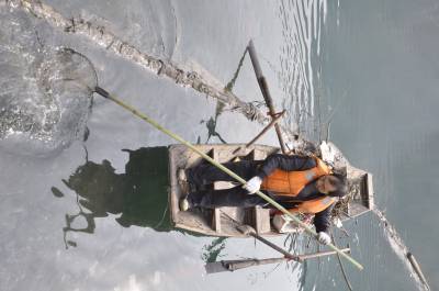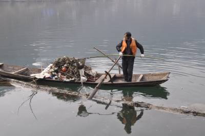 2月1日(腊月二十九),一条清漂船在清江打捞废弃物。春节期间,长阳环保部门投入人力,加强对清江环境保护。黄翔摄