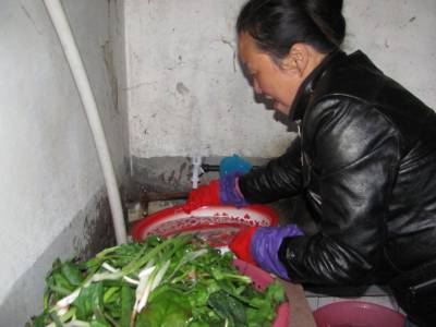 2011年2月1日,湖北省十堰市郧县刘洞镇居民正用当天接通的自来水淘菜。为解决当地群众吃水难问题,2010年该镇投资150万元在江峪水库修建自来水厂,截止当日,刘洞村、毛坪村等六个村1.5万人的安全饮水问题全部解决。