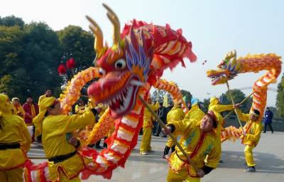 1月31日,湖北省武汉市江汉区常青街舞龙队,在汉口龙王庙公园里,为居民和游人进行精彩的舞龙表演,共同喜庆2011年兔年新春佳节。