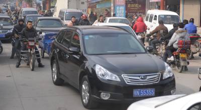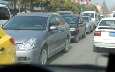 私家车”堵”了节日1日,湖北省潜江市竹根滩镇的街道上又”塞车”了。该市私家车数量达到4万多辆,加上不少驾车返乡过节的市民增多,每到春节,潜江市城乡的街道、马路越来越拥挤。吴燕军摄