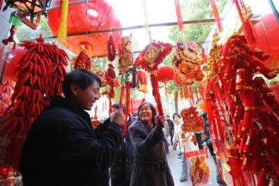 大年三十,武汉市水果湖步行街,市民满怀喜悦的心情选购红红火火的饰品。记者郑元昌摄