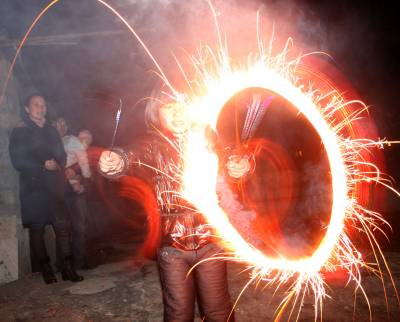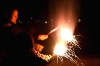 本报视界网签约摄影师颜义众:2月2日,农历除夕夜,湖北省竹溪县城关镇一小孩在大人陪同下放烟花,许心愿,迎新年。