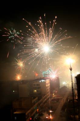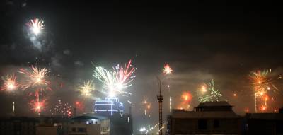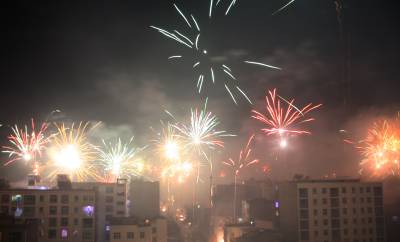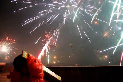 本报签约摄影师颜义众:2月3日0日,在新的一年来临之时,湖北省竹溪县城关镇居民纷纷来到室外燃放烟花,人们在火树银花中迎接新春佳节。