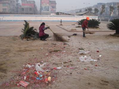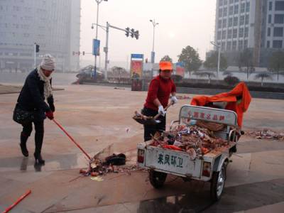 荆楚网讯(通讯员黎芳)大年初一凌晨5点,来凤县街上灯光绰约,绿化带中花草披着一层薄霜,行人罕至。一位位头戴小桔帽,身穿桔色马褂的环卫工人早已出街,清扫人们除夕之夜庆年余烬。 在酉水广场等烟花鞭炮比较集中的地段,该县环卫所还组织单位全员,共同参与清扫工作。其中负责解放路处的田白香老人已58岁,她在凌晨2点多,便走出家门,来到该场所开始工作。 据悉,春节期间他们的工作量约为平常的2倍,每天处理垃圾量达160吨。