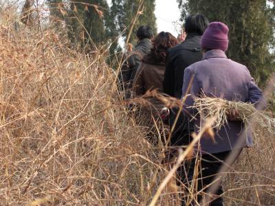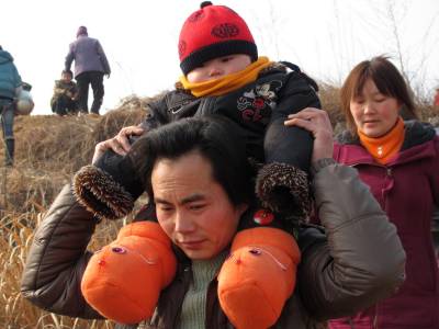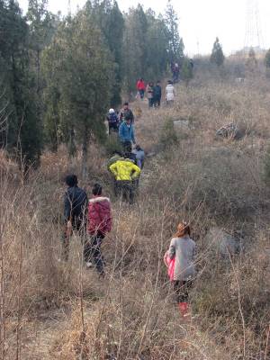 2011年2月3日,湖北省十堰市郧县刘洞镇村民正前往该镇香山观。当天正值正月初一,众多村民来到香山观敬香祈福保平安。(湖北郧县新闻宣传中心曹忠宏摄)