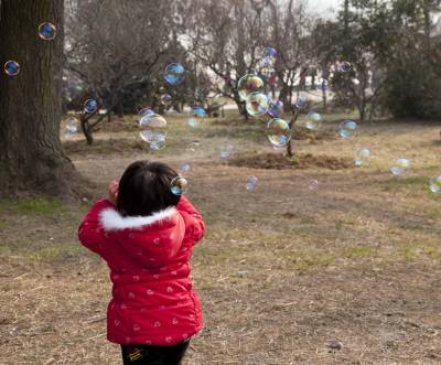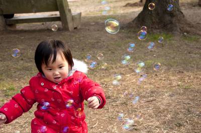 一组儿童欢快的照片,大年初一摄于东湖梅园