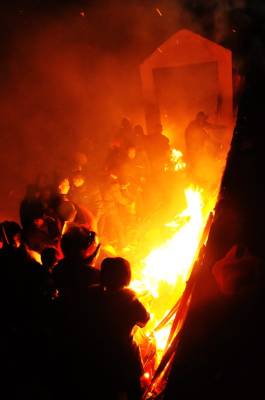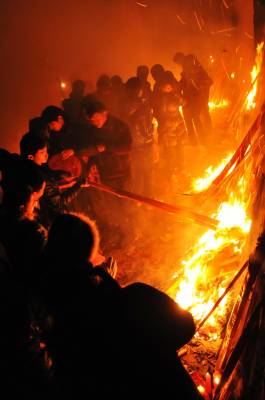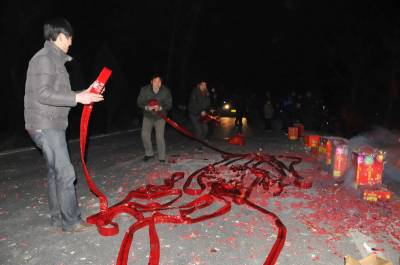 2月2日是大年三十,除夕夜湖北省郧西县城区的人们在家放过除旧迎新的爆竹鞭炮和礼花后,或乘座私家车或骑摩托车,自行车或步行,一家老少摸黑来到城东外的发官庙里烧纸上香鸣放鞭炮燃放礼花,乞求新的一年全家人年岁平安,孩子学习好考上好大学,生意顺畅发大财,家中后人能做官。家里离的远的天一黑就赶到庙里烧纸上香,此时庙地四周香火通明,进入除夕夜就达到高峰,香客从四面八方涌来,公路上车辆拥堵人流涌动,鞭炮声炸响不断,礼花弹在空中形成朵朵鲜花,现场一片通明,四周的小树上也被披上了红布,成了一幅红红火火过大年的迎春图景。发了财的家庭不断从车上卸下成箱的礼花弹运到现场,大圆盘10000响的鞭炮拆封铺在公路上,几家人的大圆盘10000响的鞭炮交汇在地面上,点燃一家人的鞭炮听到的是一声巨响。善男信女们在庙外烧纸上香跪地磕头乞求平安,进去上了香的香客己无路可回只能就近攀爬出去,现场进入上香高潮,超出了在武当山香客上香的人流,盛况空前。经询问多名香客都说不出发官庙的来历,只是几百年来都是按照这一当地风俗传统来庙里上香。发官庙早己在文化大革命破四旧中不存在了,现在是一条从郧县通向郧西县进人城区入口的省级公路,香客们在公路北侧庙的原址上建了个微型小庙,每逢节日这里就成了香客们上香乞求年岁平安的场所直到天明。图一为香客们正在上1.5米高的香的场地上点燃香火时的情景。图二为发了财的人们将大圆盘10000响的鞭炮拆封铺在公路上时的情景。周家山张义雄摄湖北省郧县城管大队电话13872840078邮编442500