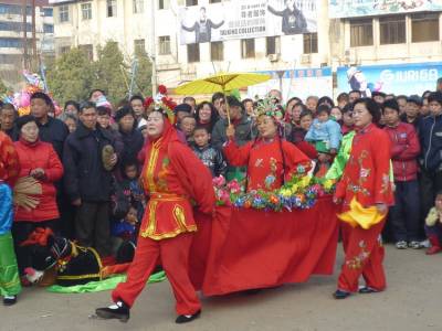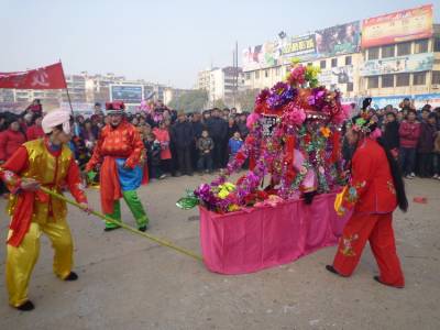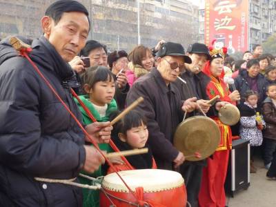 正月初二下午,均州路办事处组织的玩旱船、抬花桥拜大年活动在新广场举行,受广大群众的喜爱。