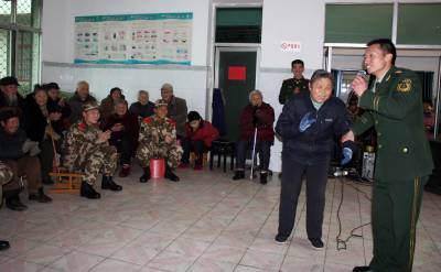 2月5日(正月初三),武警武汉市支队蔡甸区中队官兵带着自编自演文艺节目和生活用品,来到蔡甸区福利院看望慰问老人。中队与蔡甸区福利院老人们结成”帮扶”对子已有6年了。每逢过年过节,中队都要组织官兵来看望慰问老人,为他们打扫卫生,送去米面油等日常生活品,福利院的老人们亲切的称武警官兵为他们为”兵儿子”。(本报视界网谢定安彭婷婷摄)