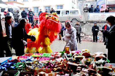 传统民俗助兴”文化年”2月5日,几位民间艺人在恩施市红土乡红土社区为居民表演舞狮。当日是农历大年初三,恩施城乡街头精彩的舞狮、莲湘和耍耍等民俗表演,表达了农民庆丰年、憧憬未来的喜悦心情,也给城乡增添了浓浓新春年味,为广大市民送上一道精美的节日文化大餐。(视界网彭绍峰梅德海摄)红土乡政府13329820218