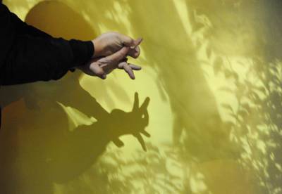 手影兔迎新年除夕,湖北省潜江市一市民在街道的一面墙上弄出兔子造型的手影,迎接兔年新春的到来。吴燕军摄