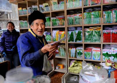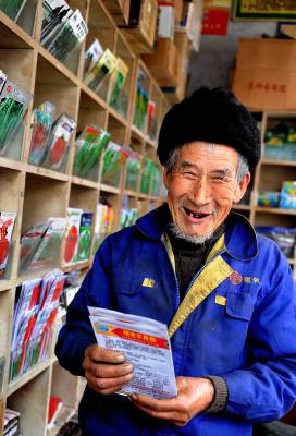 7日,一老农在宣恩县种子销售商店购买蔬菜种子。春耕大忙在即,宣恩县的农民们淡化”年味儿”,积极备土备肥备种,为春耕生产作准备。本报视界网宋文摄