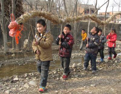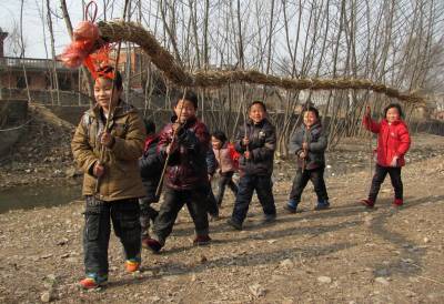 > 山里娃舞龙贺新年(中国春节)