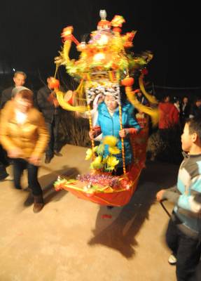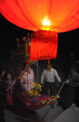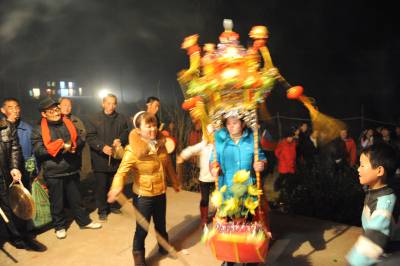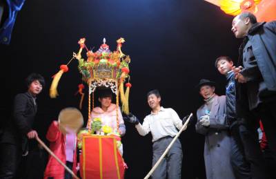 民间艺人拜年贺新春2月7日晚,湖北省潜江市积玉口镇民间艺术团演员在为村民表演”采莲船”拜年,送去新年祝福。遍布在潜江市的100余个民间艺术团体将龙灯、彩狮,蚌壳精等民俗节目搬到百姓家门口,给当地群众拜年,恭贺新春。吴燕军摄