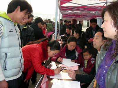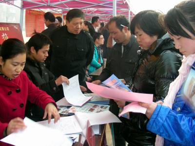 ”春风行动”让农民工就业无忧8日,返乡农民工在咨询台前应聘工作岗位。当天,黄梅县举行以”服务招商引资,促进就近就业;开发技能人才,扶持自主创业”为主题的”春风行动”暨就业招聘活动,来自县内的近100家企业为农民工提供了1万余个就业岗位,让农民工在家门口实现就业。(本报视界网吴志雄摄)