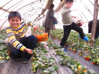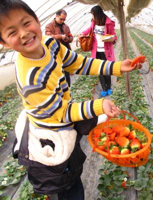 > 武汉市全家采摘草莓感受不一样的春节