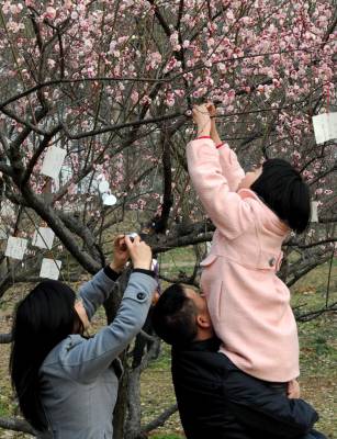 东湖梅花开了,引来赏梅者/摄梅人童汉芳2011.2.8.摄于东湖梅园