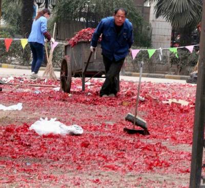 "中国春节"征稿清扫清运除夕之夜放鞭炮后的纸屑
