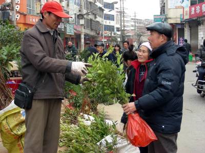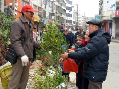 精心选购树苗9日,黄梅县黄梅镇农民在苗木市场选购优质柑桔苗。随着天气渐渐转暖,该县群众纷纷抓住有利时机,投资竞相购买树苗,植树造林,为绿化家乡、增加经济收入奠定基础,全县掀起了植树造林高潮。(本报视界网吴志雄摄)