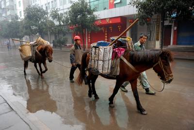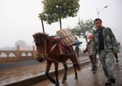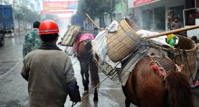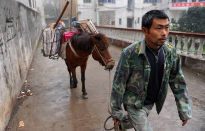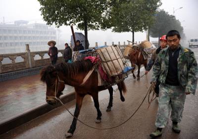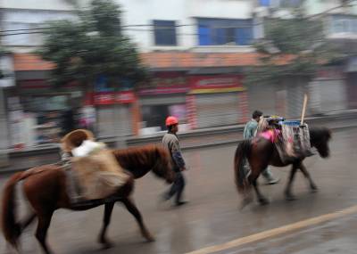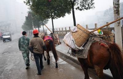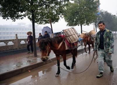 9日,行走在宣恩县街头的马帮。春节刚过,宣恩县珠山镇莲花坝村的村民们带着马匹,开始为交通不便的农民运送春耕物资闹春耕。本报视界网宋文摄