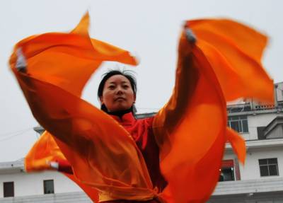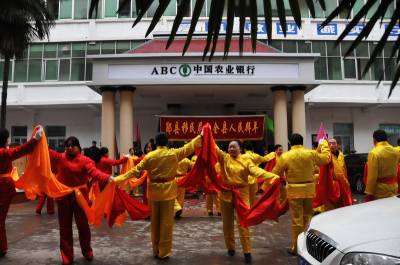 图片 郧县移民局雨雪中跳起秧歌拜新年