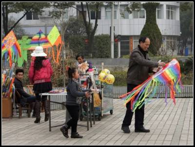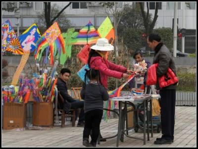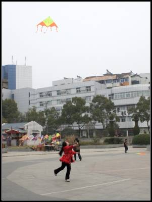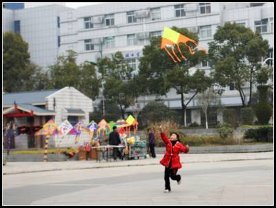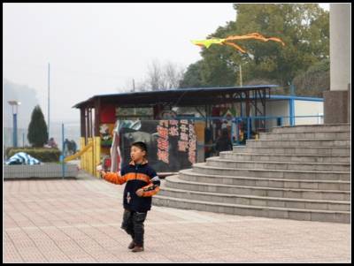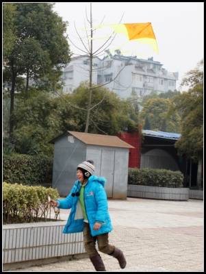 2011年2月8日,湖北省宜昌市夷陵区一小朋友在放风筝。新年伊始,宜昌城到处呈现出浓浓的春意,还没有上学的小朋友随家长的走出家门,感受春天的气息,拽着线团放飞春天、放飞童年的梦想。