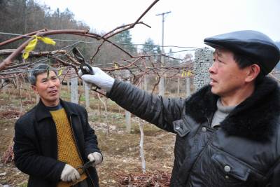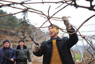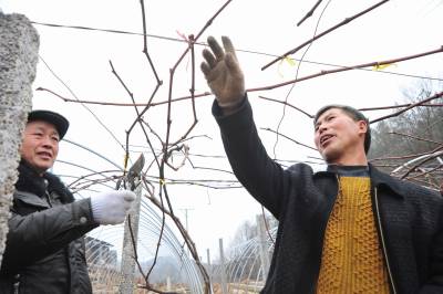 山乡”闹”春早2月8日,农历正月初六。建始县花坪乡风味独特的”关口葡萄”基地,种植大户郭振清(右)和徐远权(图一、二、三)正在切磋春管技术。春节期间,该乡广大特色种植户利用互拜新年走访机会,相互入田头,或座在一块交流取经,早早掀起”闹”春热潮。刘波摄建始县新闻中心刘波联系电话:13032794298