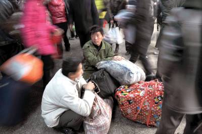 民工踏上打工路2月8日大年初六,黄石市长途汽车客运站候车厅里,来自阳新县黄桑口镇上泉村的马先中及同乡在穿梭的人流中候车,他们急着赶回武汉的高铁隧道建设工地,开始新一年的打工生活。据了解,当日,该汽车客运站送走6000多名旅客,是新年的首个客流高峰。黄石市黄石日报摄影部邱孝威摄电话:13807232603邮编:435002
