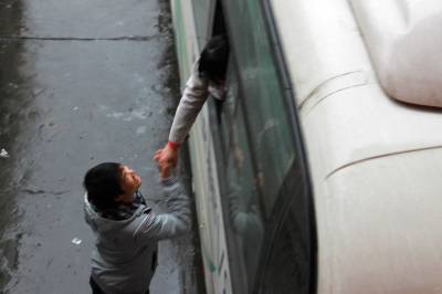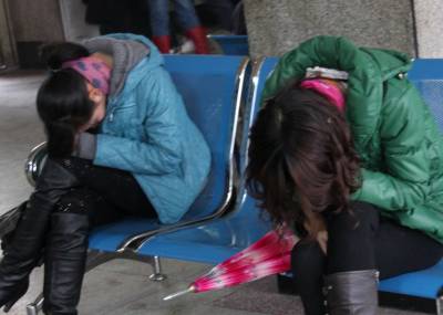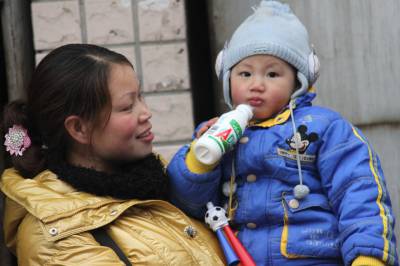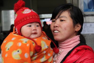 2011年2月9日,湖北省十堰市郧县客运站,一年轻母亲正抱着孩子准备乘车。受强冷空气影响,当天,湖北全省范围普遍出现雨雪天气,降温幅度较大,雨雪的降临加快旅客返程步伐,再掀返程高峰。