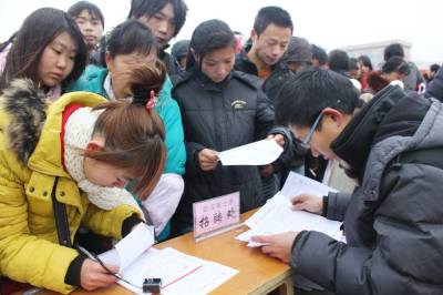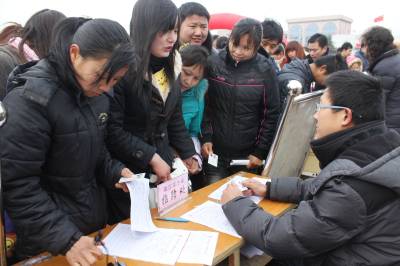 2月10日上午,孝昌县2011年”春风行动”劳务招聘会在该县花园广场举行。招聘现场,共有来自孝昌县内外30余家用人单位前来招聘,提供就业岗位5000多个,进场求职人数近万人,当场达成就业意向5000余人次。宋俊初摄