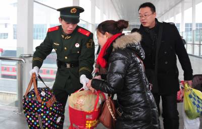 担负着恩施火车站春运执勤的武警恩施州支队直属一中队官兵,组织成立了”春运服务队”,为过往旅客提供帮助,确保旅客安全出行,为春运保驾护航。杨顺丕孙俊涛摄