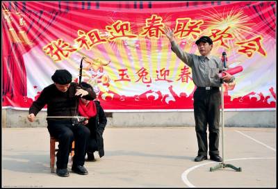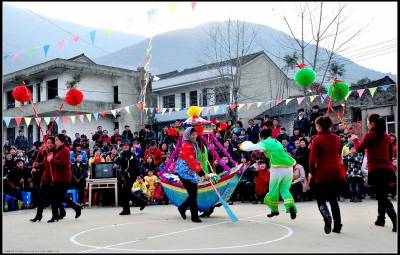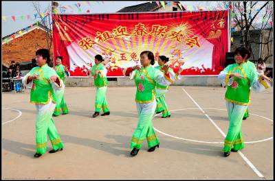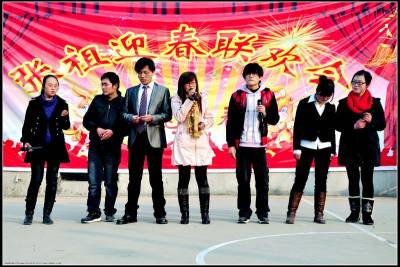 新春佳节,鄂州市汀祖镇张祖湾村民在湾文化广场自娱自乐,举办一场内容丰富,主题鲜明,贴近生活,喜闻乐见的新春联欢会,整台节目全部源自群众自编自导自演,村民们饱尝了一顿文化自助大餐.