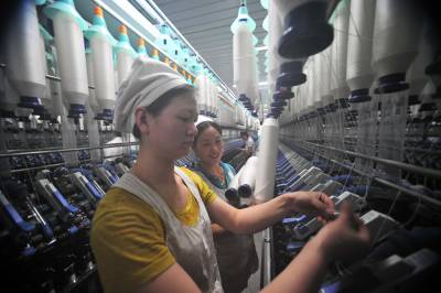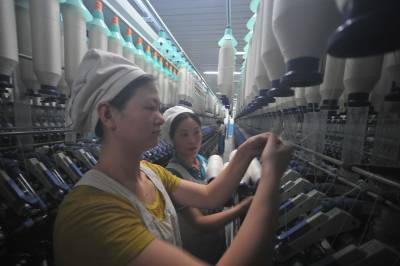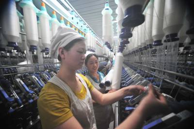 1月10日,岗位能手在生产线上向新员工传授技术,进行岗位能力提高。新年伊始,际华三五四二纺织有限公司为继续扩大生产做准备,抓住招工有利时机,新招部分员工。公司抓紧员工技能培训,提高技术水平,确保新员工早日上岗。