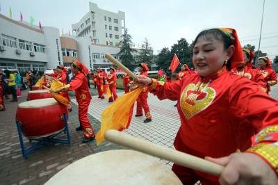 征地拆迁农民给政府拜大年2月10日,宜昌市猇亭区的被征地拆迁农民自发组织民间民俗文化活动表演队走进区政府机关拜大年。据了解,春节期间,该区各街办及各居(村)被征地拆迁群众均组织了以舞狮、舞龙、采莲船、高跷、腰鼓、秧歌等表演形式的民间民俗文化活动,享受着征地拆迁之后的美好幸福生活。本报视觉网唐水唐摄