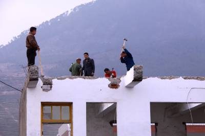 农民工请注意安全施工(图文)竹山县宝丰镇中心学校朱本双电话:13177481456邮编:442213电子信箱:zsbfzbs@126.com2月10日,笔者在竹山县宝丰镇中心学校拆除旧教学楼施工现场看到,几位农民工都没有佩戴安全帽,站在高高的楼顶边沿劳动,让人胆战心惊。笔者发现,在一些管理不规范的施工现场,农民工不戴安全帽成了司空见惯的事。”安全生产,预防为主”。安全帽是最起码的劳动防护用品,希望农民工要增强自我防护意识,能自觉佩戴安全帽。